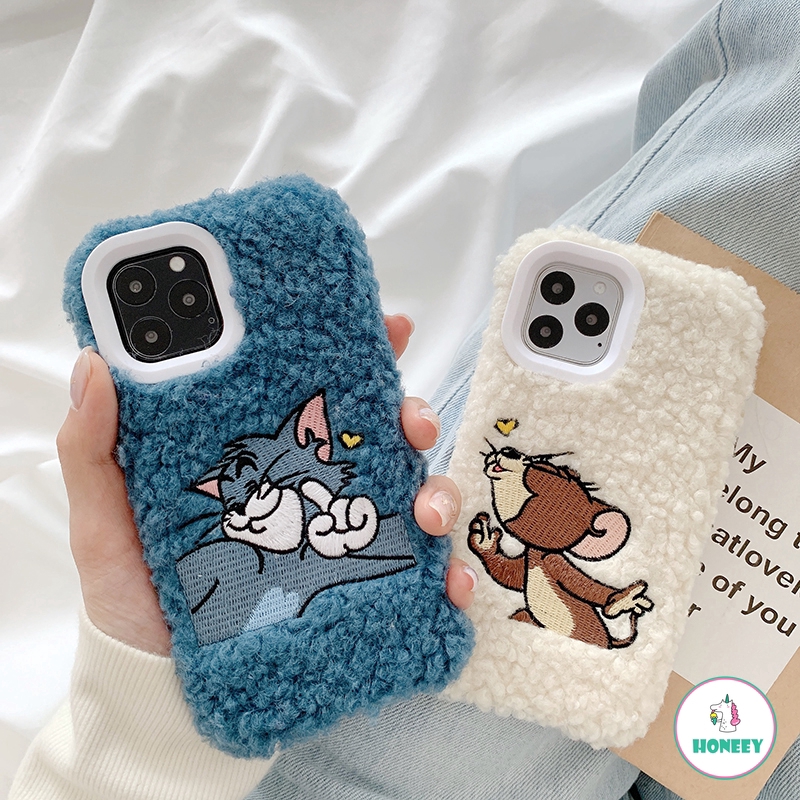 Funny Embroidery Tom And Jerry Fluffy Hairy Plush Case For Iphone 11 Pro Max Xr Xs Max 6s 8 7 Plus